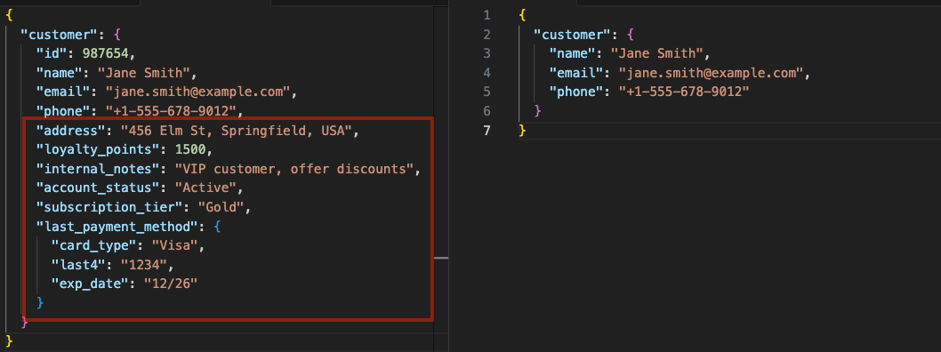 Imagine an API for a customer database that returns internal IDs, passwords, or unnecessary metadata when all the client needs is a name and email. Or a mobile app fetching user profiles but accidentally exposing credit card details. These oversights pose serious risks, especially if attackers intercept or manipulate API calls.